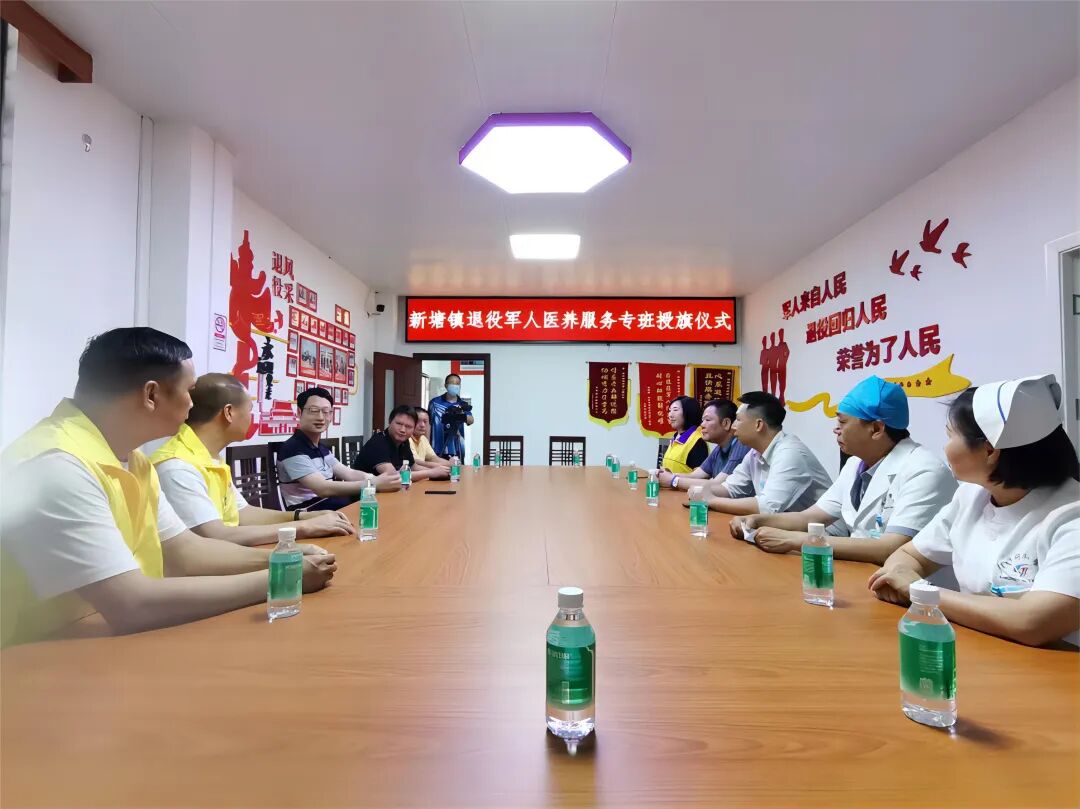 新塘镇人民政府及退役军人服务站领导为我院授旗